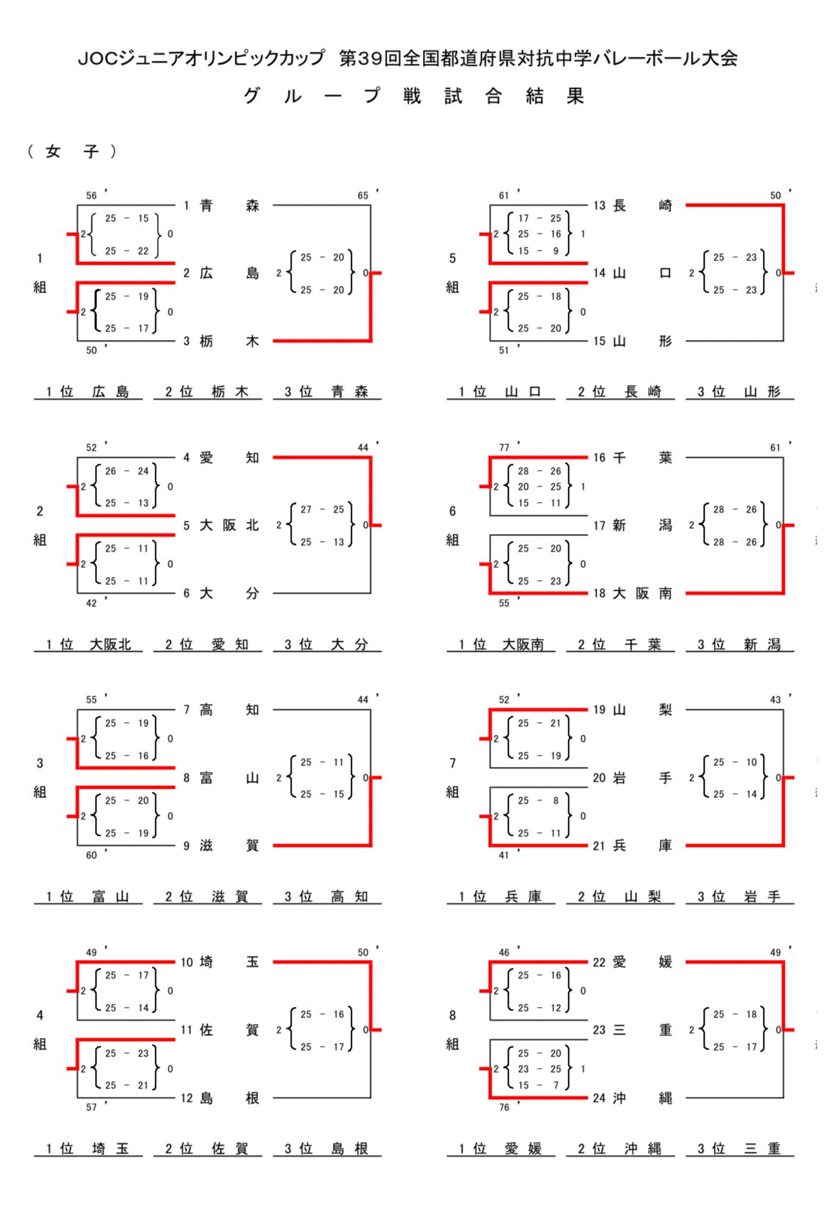 予選リーグ 2025年 女子 結果速報