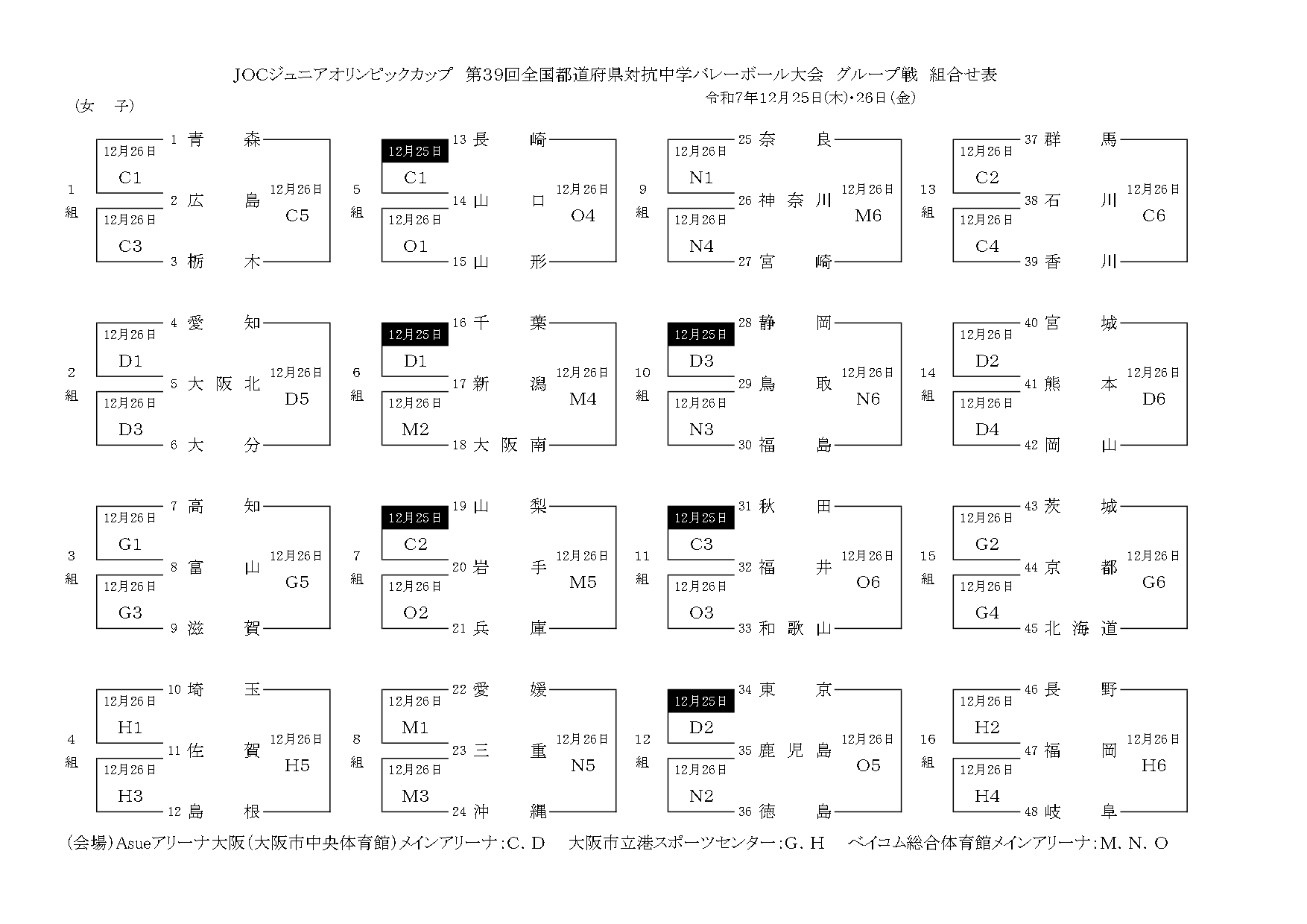 組合せ JOC中学バレーボール大会 2025