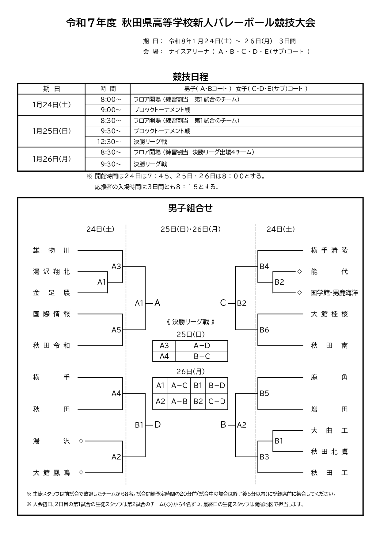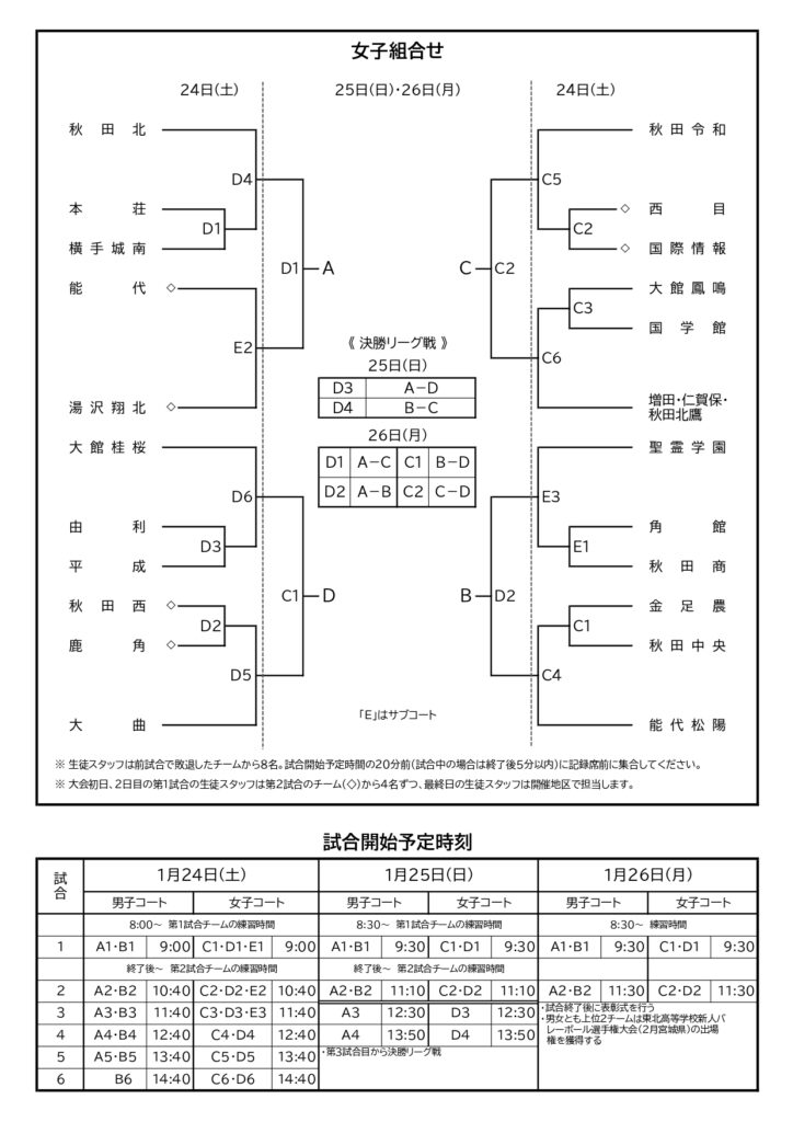 【 秋田県 組合せ 高校バレーボール新人戦】