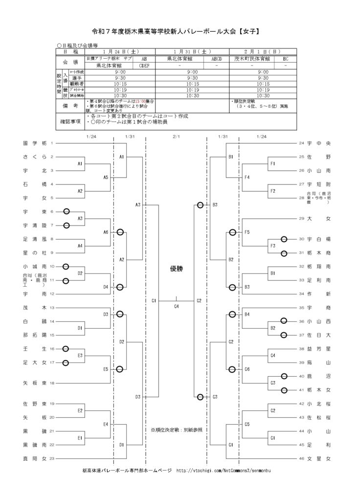 【 栃木県 組合せ 高校バレーボール新人戦】
