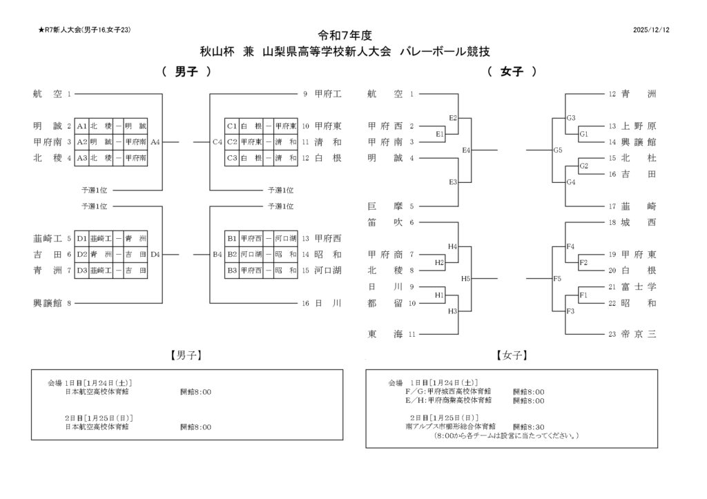 組合せ 山梨県新人大会 高校バレー 2025-26